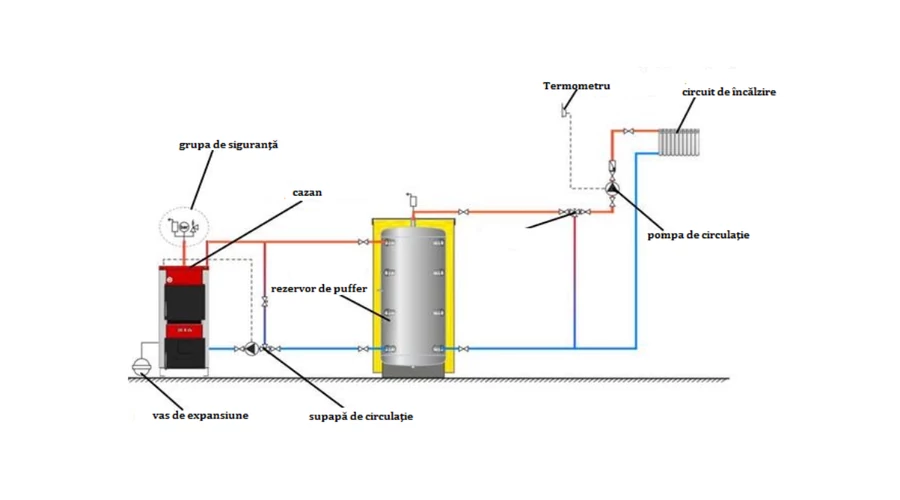 - Racord de umplere si golire in partea din spate a cazanului