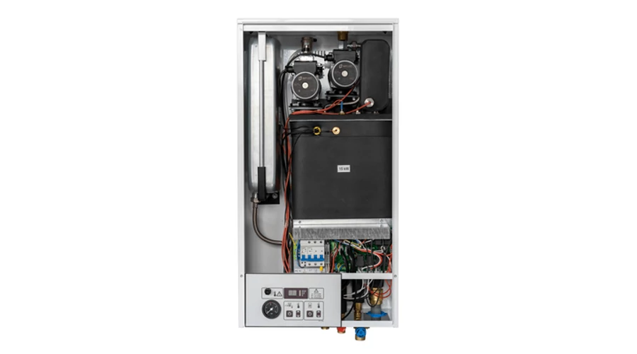 Cazanul electric este dotat standard cu două pompe ERP Ready, controlate cu frecvență, antiaderent și circulante, cu un consum minim de energie. O pompă este responsabilă de circulația apei calde de încălzire, în timp ce cealaltă pompă circulantă este responsabilă de circulația apei calde de încălzire care curge prin placa schimbătorului de căldură, utilizat pentru producerea apei calde menajere.