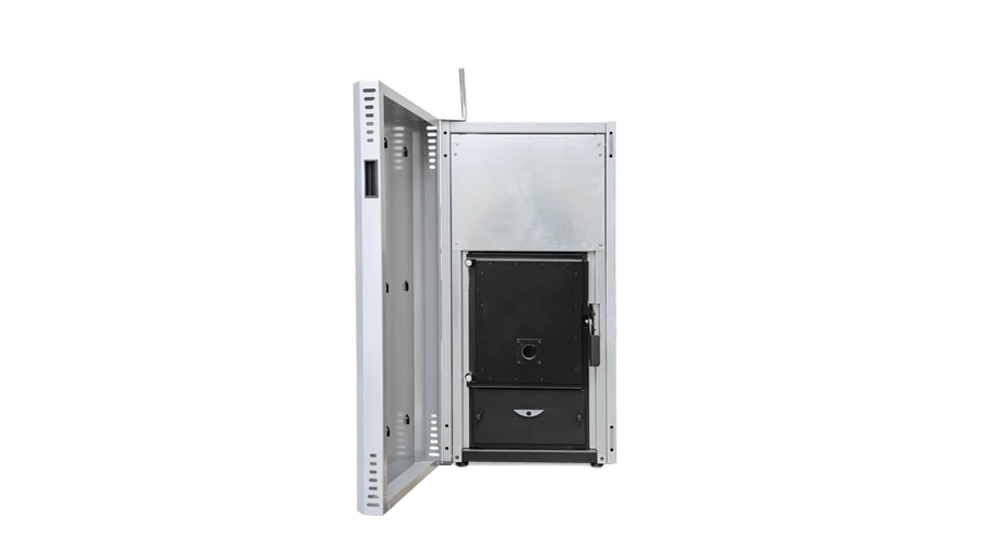 - curățare mecanică automată a grătarului cu un melc de evacuare automată a cenușii, care transportă cenușa din cazan într-o cutie de depozitare externă a cenușii, dispusă în partea dreaptă a cazanului