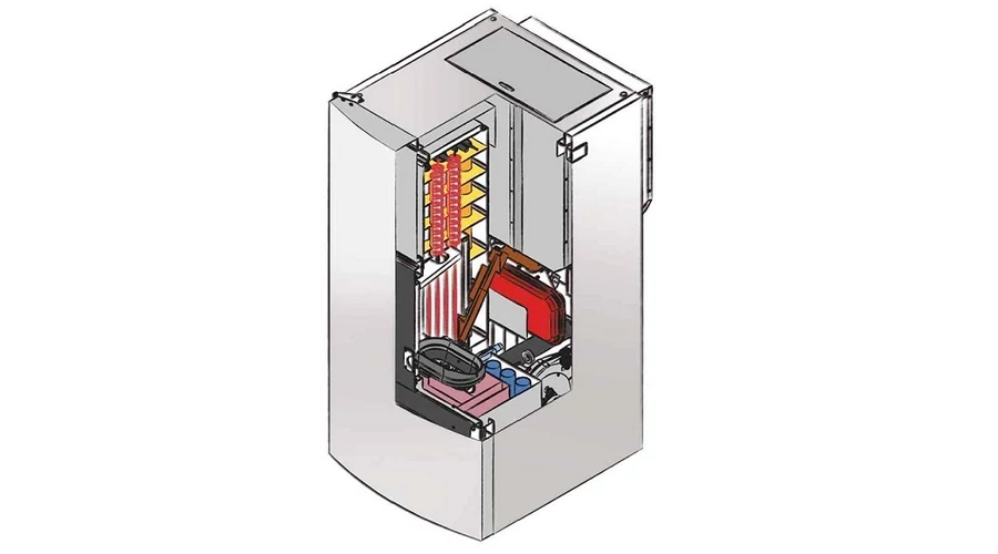 Își transferă puterea termică către sistemul central de încălzire prin conectare directă, fiind echipat încă din configurația de bază cu cele mai importante accesorii pentru sistemul de încălzire: pompă de circulație încorporată, supapă de siguranță, presostat și vas de expansiune. Întreținerea schimbătorului de căldură este facilitată de sistemul de curățare semi-automat al acestuia.