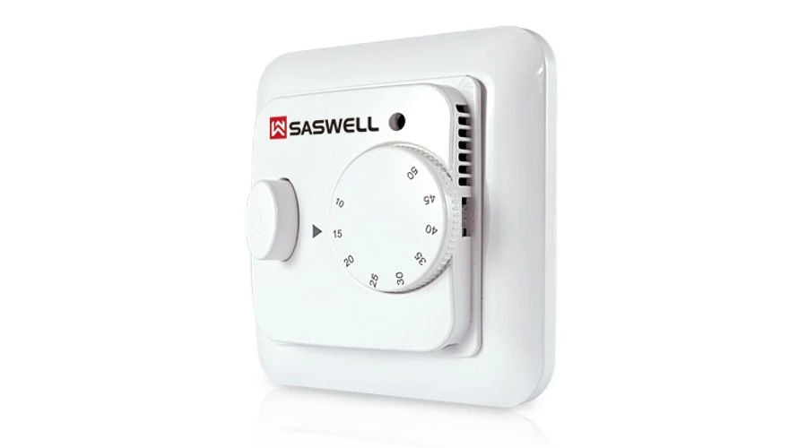 Termostatul manual pe perete montat standard cu senzor de temperatura pe podea. Are o interfata simpla cu un comutator de pornire/oprire, un afisaj de temperatura LCD si un control al temperaturii butonului rotativ. Este montat standard cu un senzor de temperatura pe podea si de camera. Optional controleaza functionarea incalzitorului electric.