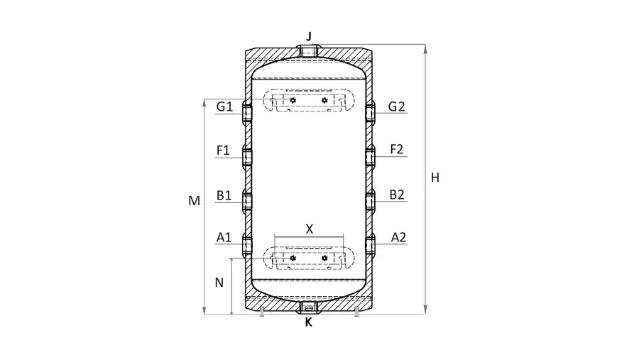 Pana la 13 racorduri G1″ sau G1½” pentru conectare la cazane, sisteme de incalzire indirecta
