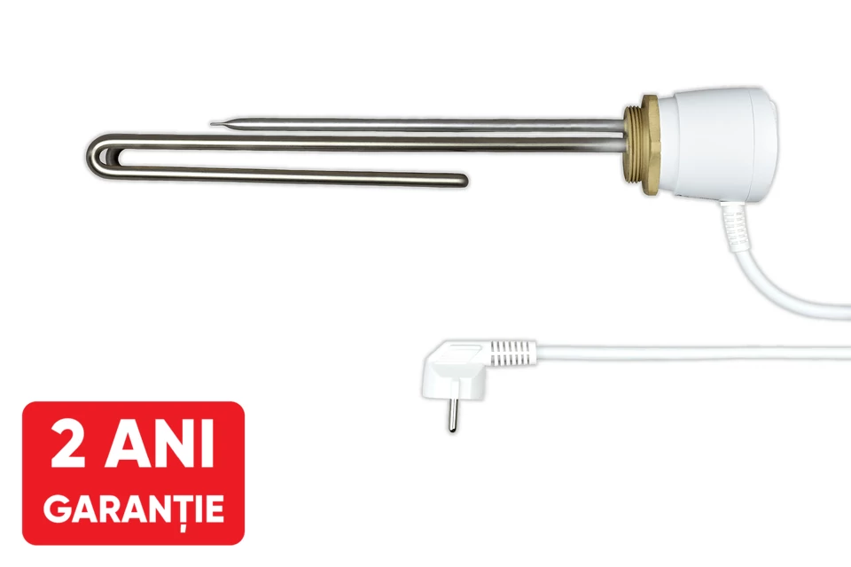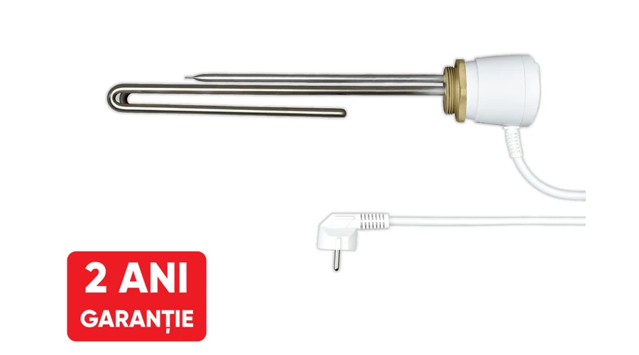 Rezistenta electrica are o conexiune de 5/4 " inch si este protejat de o suprafata din otel inoxidabil. Termostatul bimetalic incorporat are un interval de temperatura controlat de 20-80 °C si o temperatura de comutare a limitatorului de siguranta termica de 95 °C. Lungimea sectiunii elementului de incalzire care se extinde in rezervor este de 390 mm.
