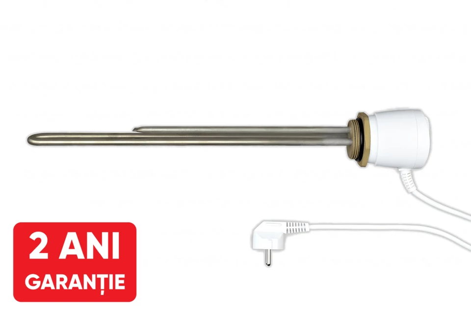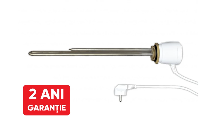 Rezistenta electrica are o conexiune de 6/4 " inch si este protejat de o suprafata din oțel inoxidabil. Termostatul bimetalic incorporat are un interval de temperatura controlat de 20-80 °C si o temperatura de comutare a limitatorului de siguranta termica de 95 °C. Lungimea sectiunii elementului de incalzire care se extinde in rezervor este de 390 mm.