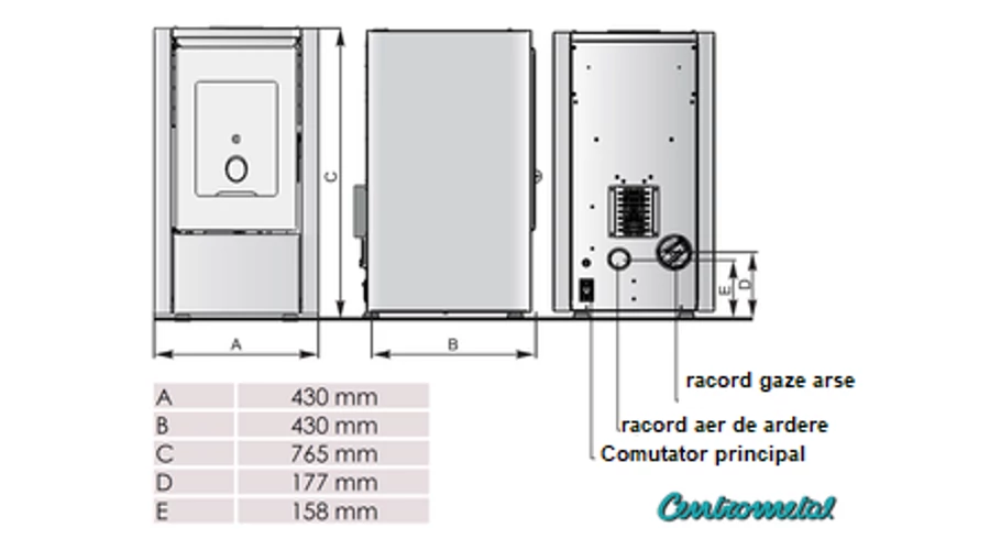 - Diametru țeavă de evacuare gaze de ardere: 80 mm